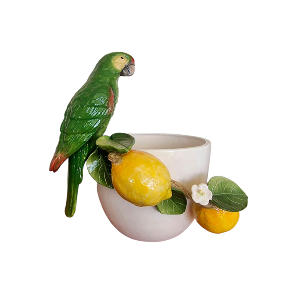 Lindo Cachepot com Arara e aplicação de limão. Feito à mão com todo carinho e cuidado feito. Peça produzida em cerâmica. Perfeito para ser usado como vaso ou Cachepot para decorar diferentes ambientes da casa.